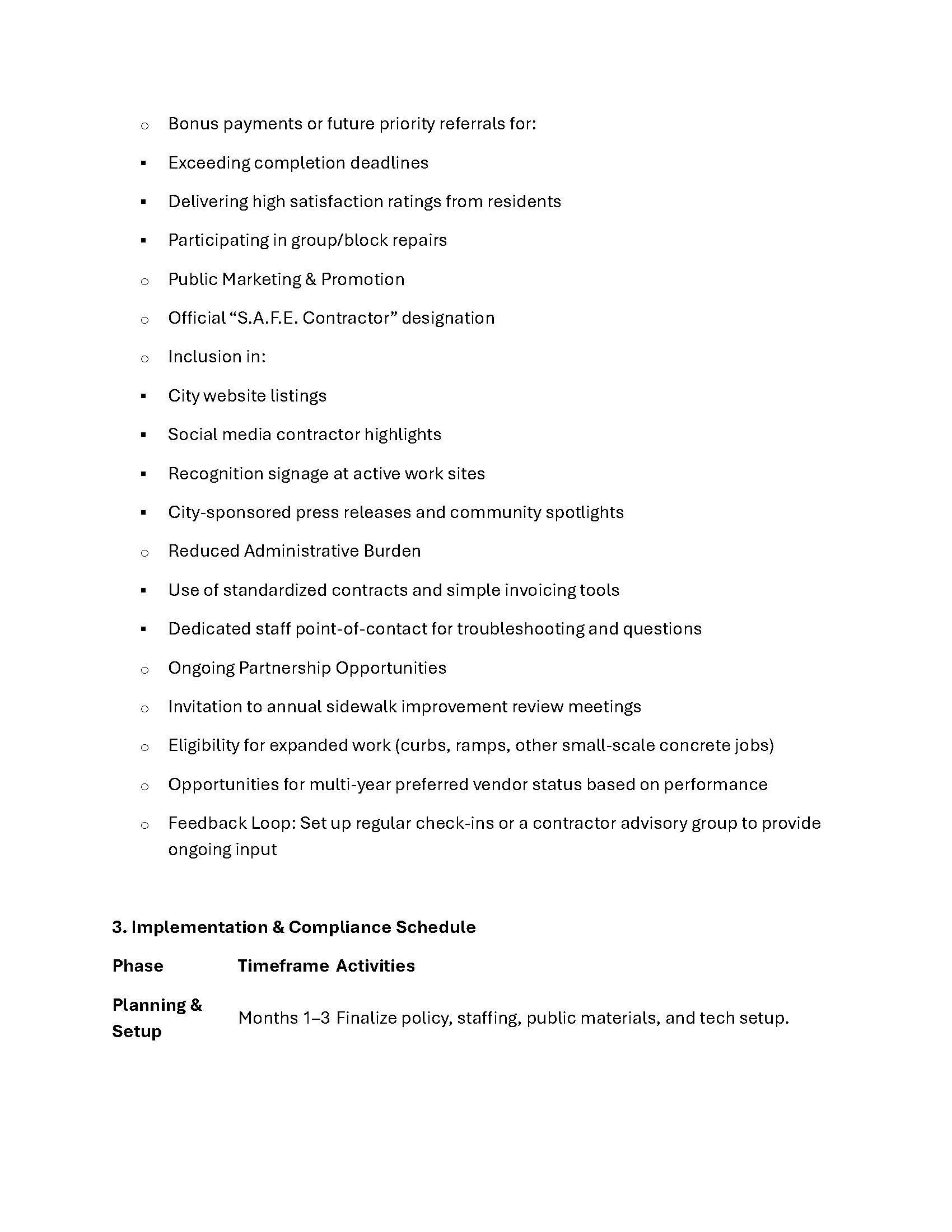Based on the success of a street grading system, Council introduced Resolution 102-25 to authorize a sidewalk grading company.