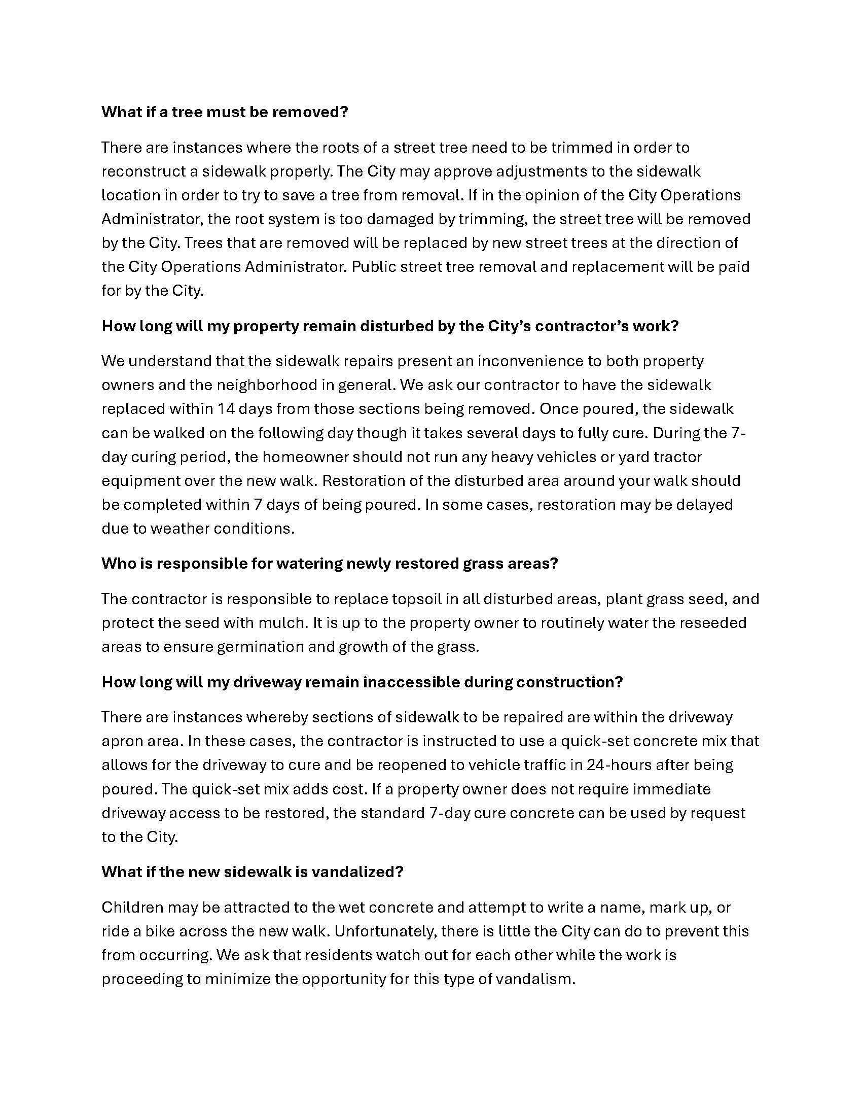 Authorized immediate hiring of a sidewalk grading company to begin evaluations.